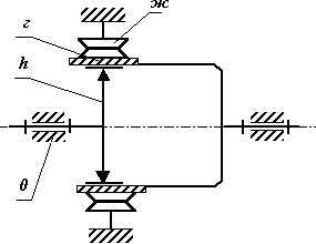 В движении звеньев относительно генератора волн скорости звеньев равны угловым скоростям в движении относительно стойки минус угловая скорость генератора. Скорость точки жесткого колеса, совпадающей с полюсом зацепления V = (wж- wh) Чr,а скорость точки, совпадающей с полюсом на гибком колесе V = (wг- wh) Чr